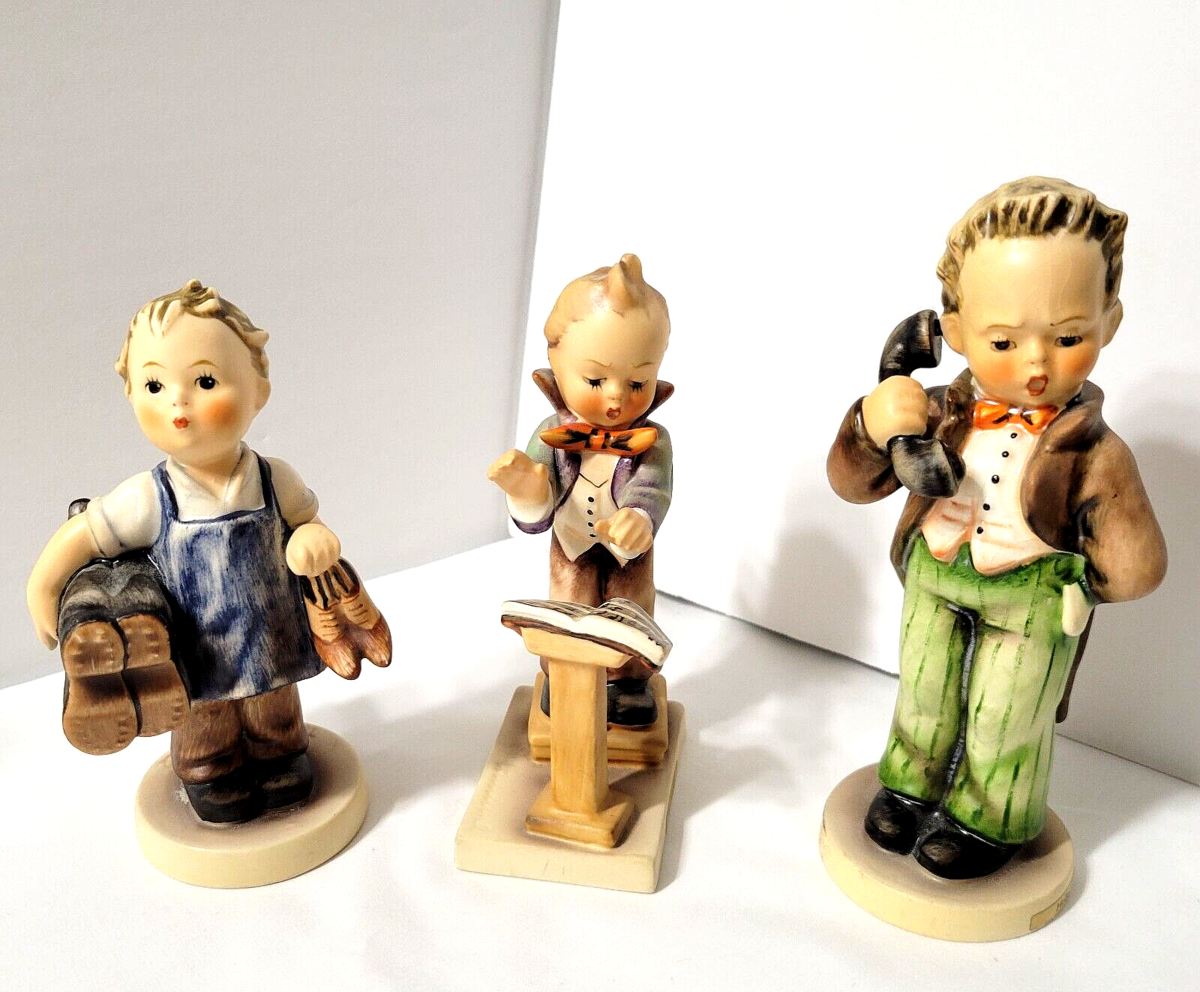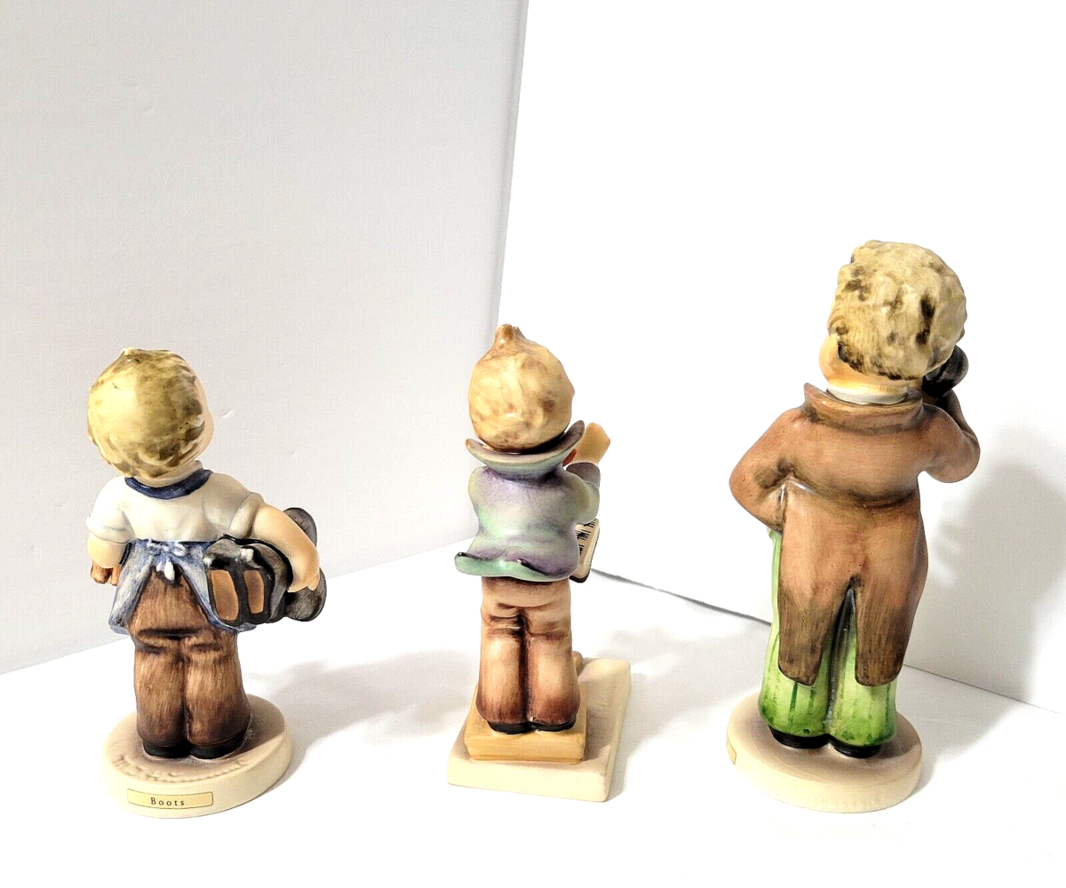 Hummel Figurines 3 Boys Vtg TMK 3- 143/0 'Boots' 129 'Band Leader' 124/0 'Hello'