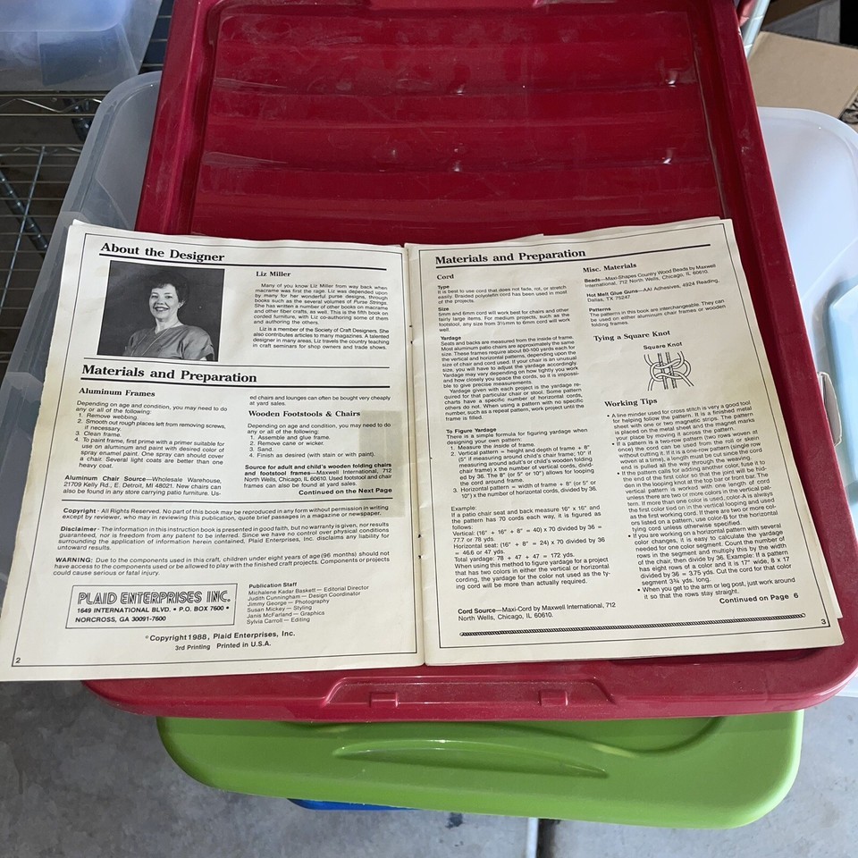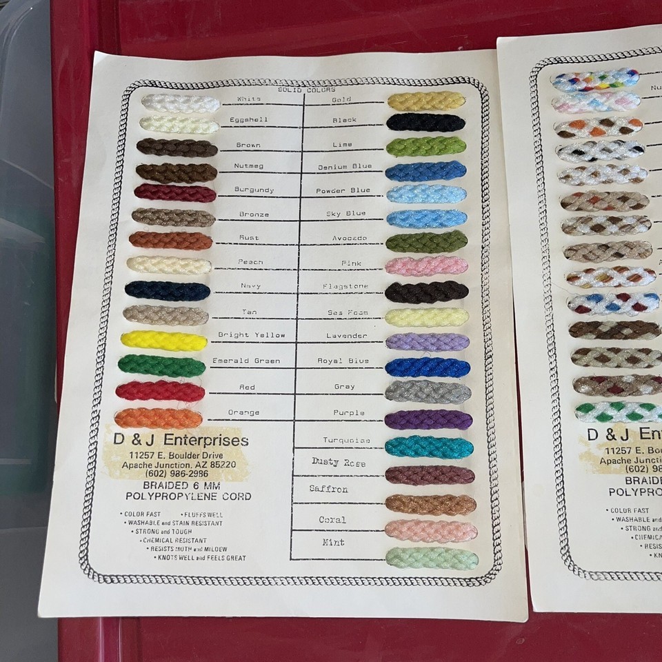 2 Vintage Macrame Polypropylene Samples + Book Lawn Lounge Chairs, Hammock, 6mm.