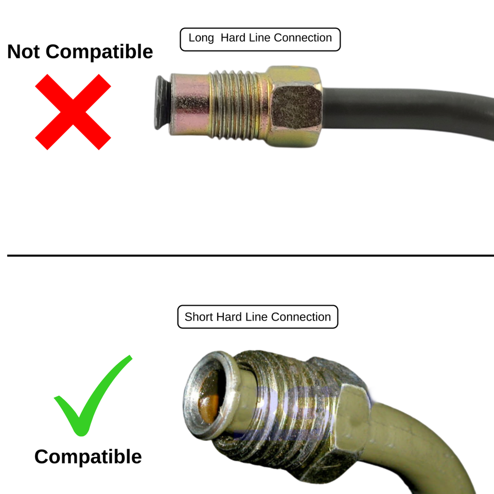 Note: This fitting adapter is only compatible with Hondas and Acuras with a short end connection on the hardline. Please review the pictures and confirm the size before ordering.