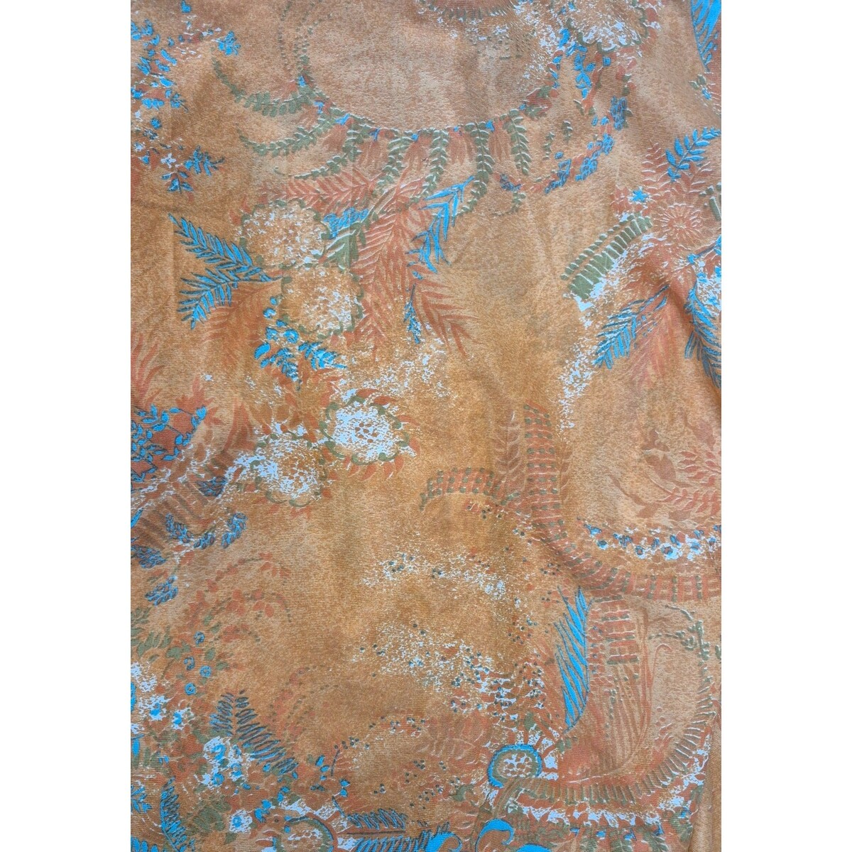 What you?ll love about this 1970s slinky disco shirt is the bold orange-and-turquoise swirling print, the silky nylon/acetate drape, and that unmistakable oversized 70s dagger collar that gives every outfit instant Studio 54 energy. It?s a perfect piece for collectors of groovy prints, retro nightlife fashion, and true disco-era slink that moves with the body. These slinky acetate/nylon blends from the 70s are increasingly rare, especially in such vibrant colors and wearable condition.