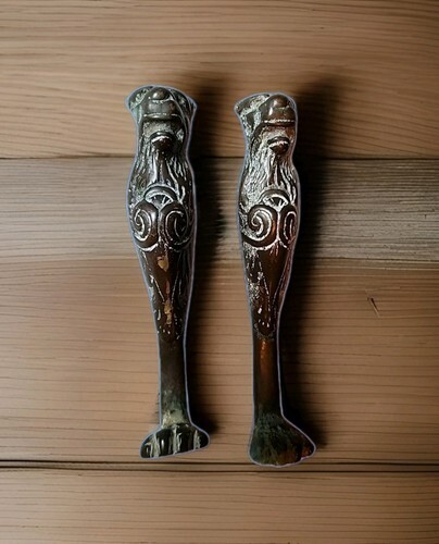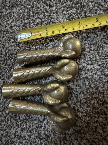 This listing is for one vintage brass lion door knocker. Used of course. This great looking knocker is about 6 inches tall and 3.5 inches wide. Not cracked, the back has some mold lines that are not cracks. Made of heavy brass. No markings. No returns.