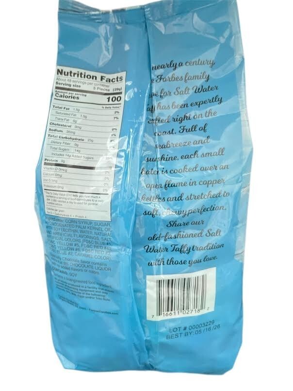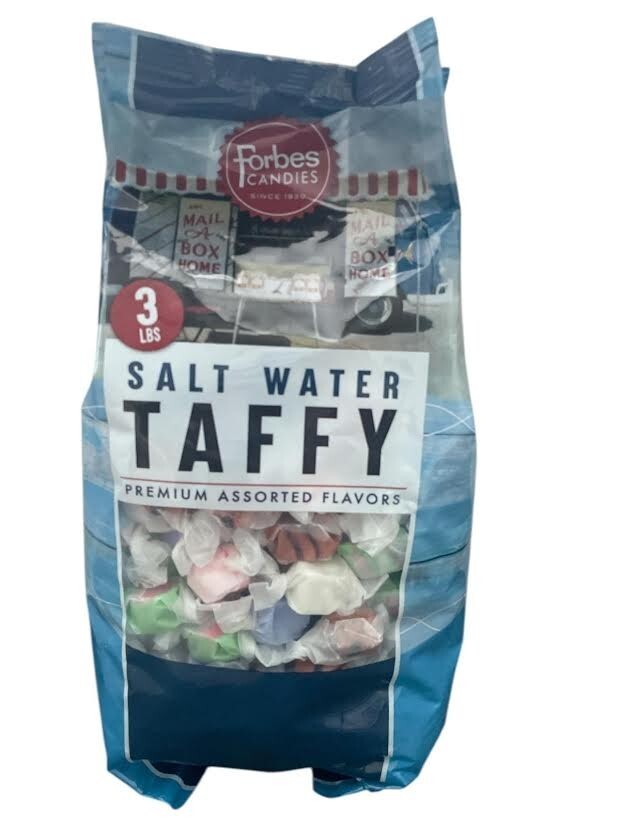 The image shows a 3-pound bag of Salt Water Taffy with assorted flavors. ?