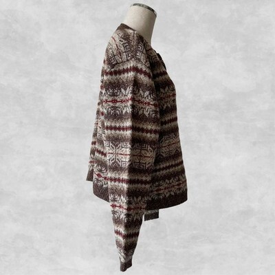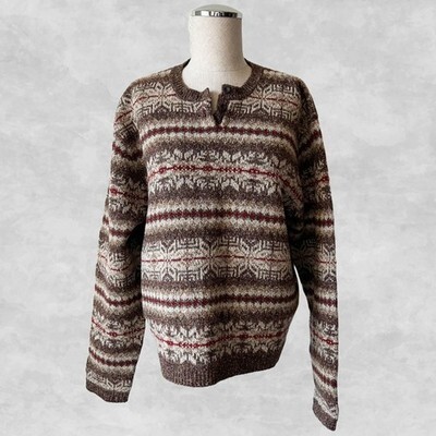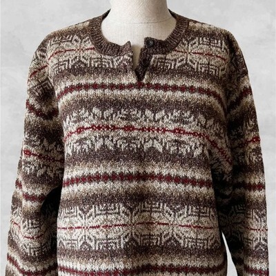 Eddie Bauer Women’s Large Wool Blend Fair Isle Sweater Brown Red Nordic