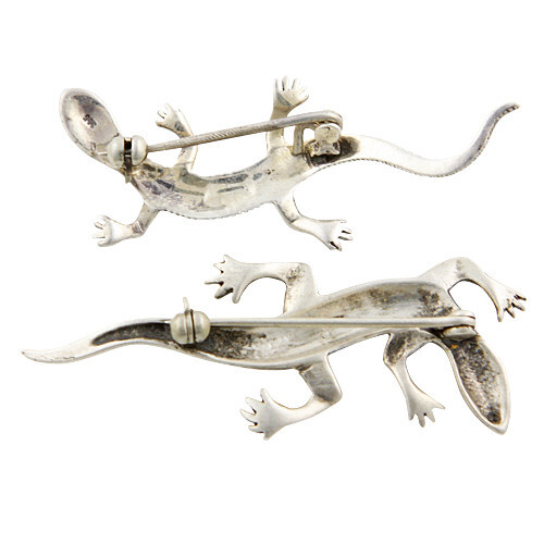 TWO (2) VINTAGE STERLING SILVER MARCASITE DECORATED LIZARDS, GECKO BROOCHES METAL: Sterling Silver 1ST ITEM MEASUREMENTS: 2" L x 3/4" W. 1ST ITEM FEATURES: A Lizard brooch decorate with two rows of Marcasie Stones. 2nd ITEM MEASUREMENTS: 2 1/2" L x 7/8" W. 2nd ITEM FEATURES: A Lizard brooch decorate with three rows of Marcasie Stones