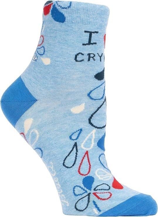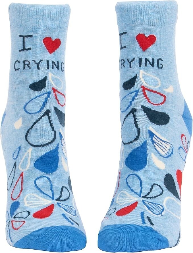 Blue Q Women’s Funny Novelty Crew Socks "I Heart Crying" (shoe size 5-10)