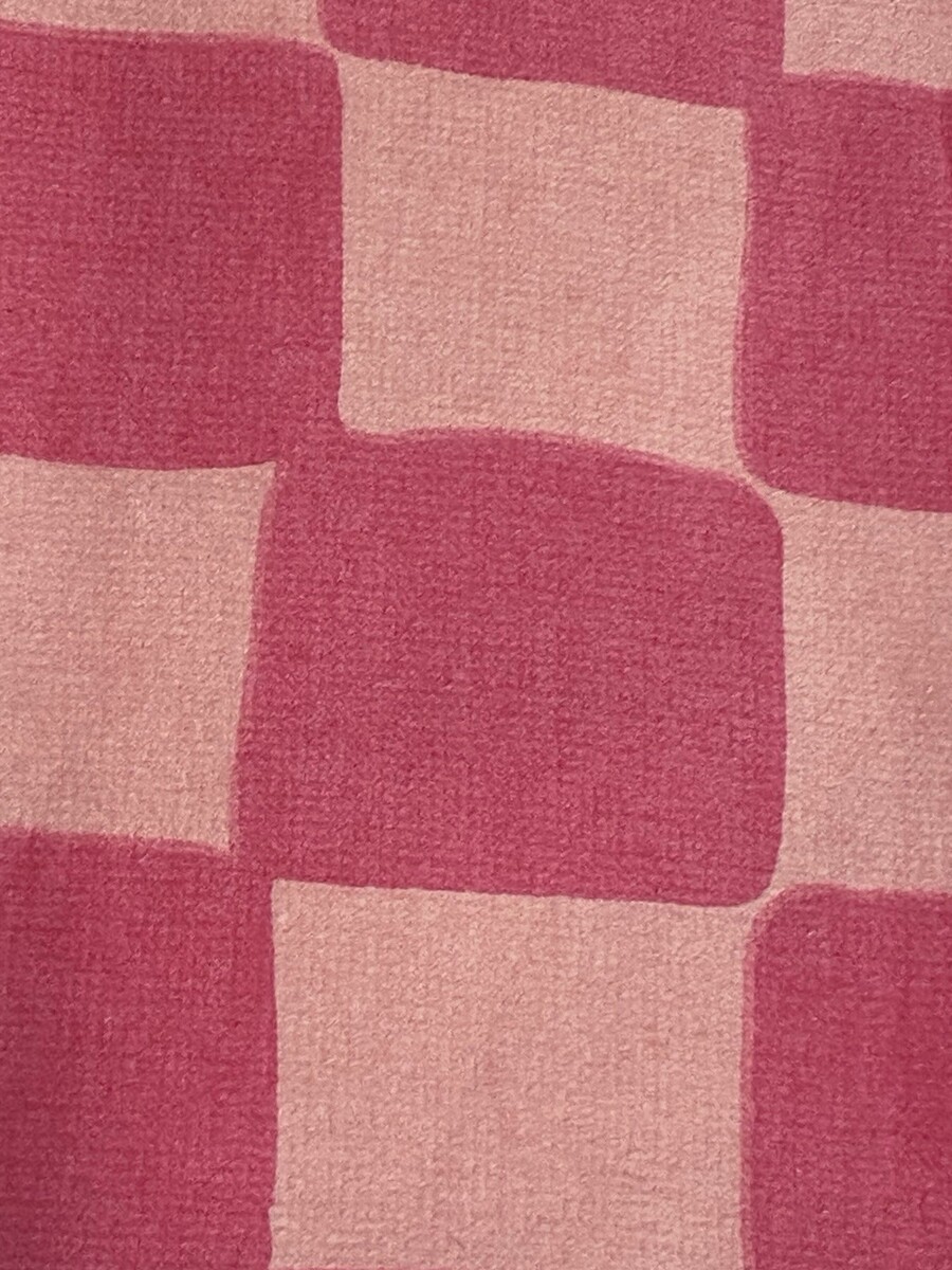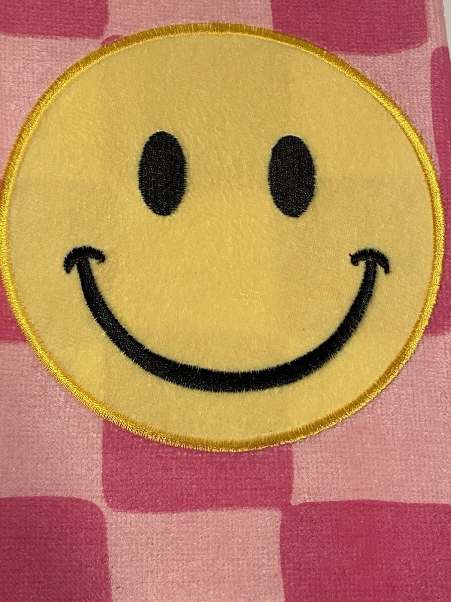 Featuring a vibrant checkerboard of light and darker pink topped with a traditional smiley face, this is a perfect set to add some color and fun to your kitchen or bathroom decor. Pair with plain white, light yellow or pink solid towels. Towels are 100% cotton and soft. The set can be machine washed using cold water and a gentle cycle.