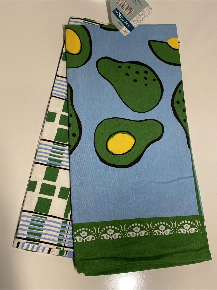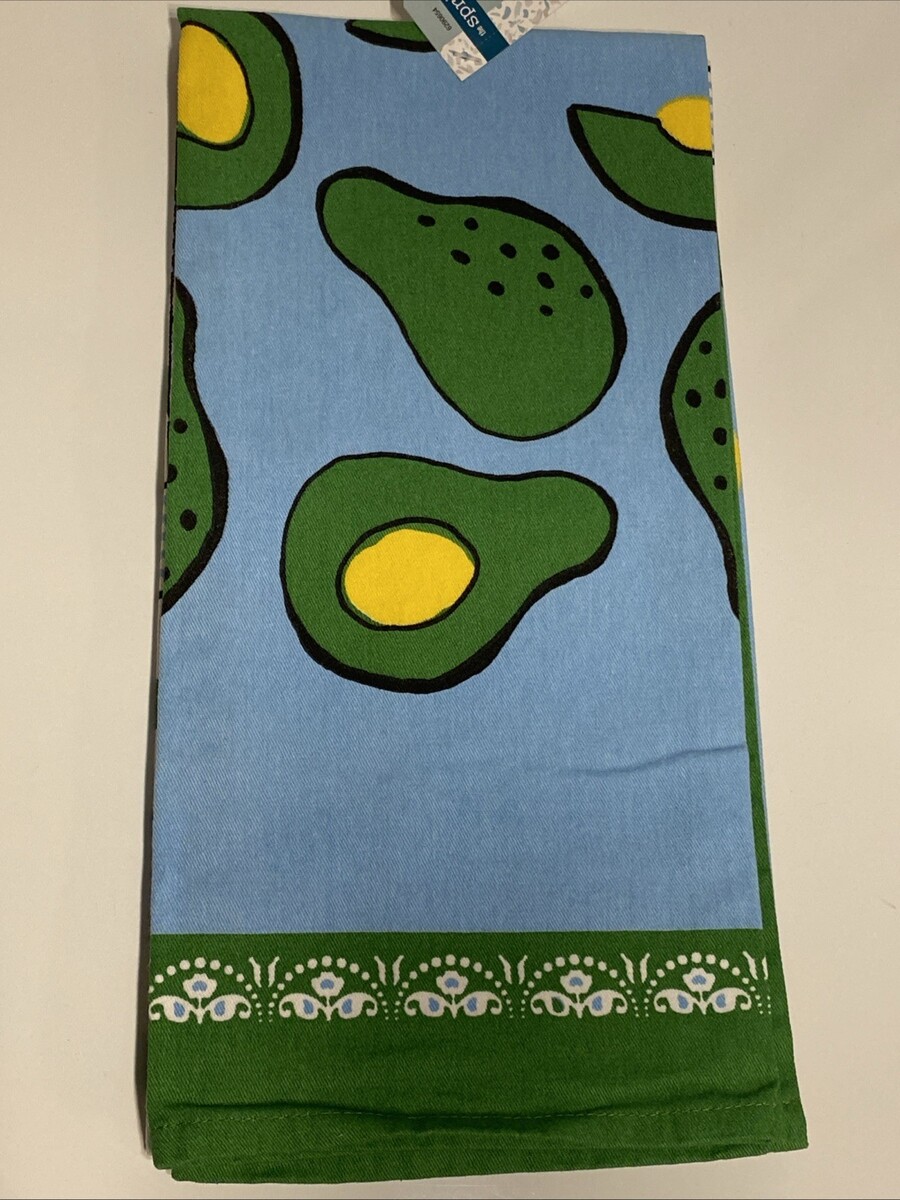LOT of 2 Kitchen Tea Towels Pop Art Style Avocados Set FUN Blue Green NEW NWT