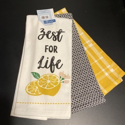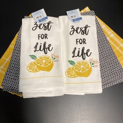 LOT of 6 Kitchen Hand Tea Dish Towels Lemon Zest For Life Black White Yellow Set