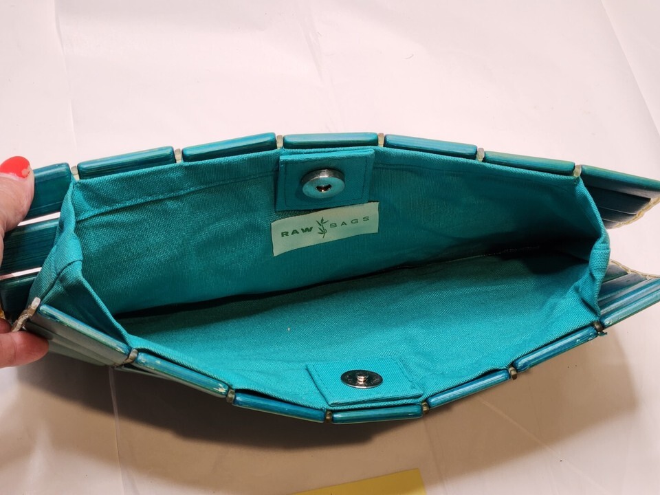 Raw Bags Wood Tiled Clutch Purse Bamboo Tile Green NEW