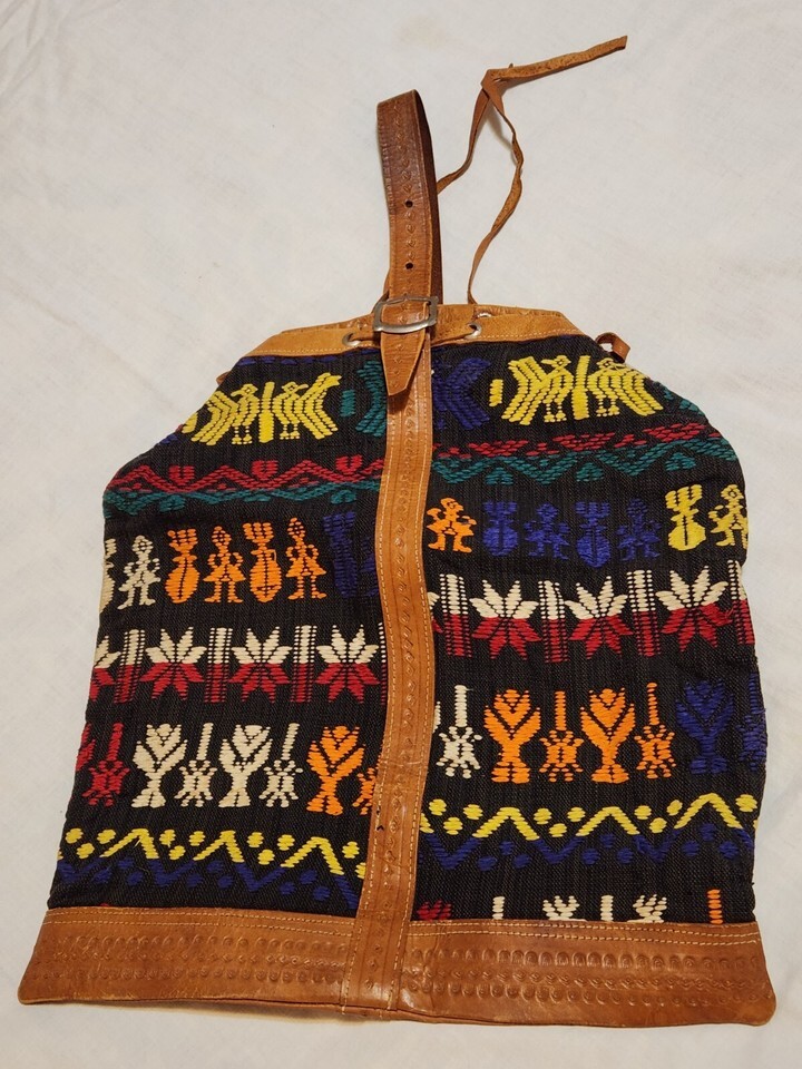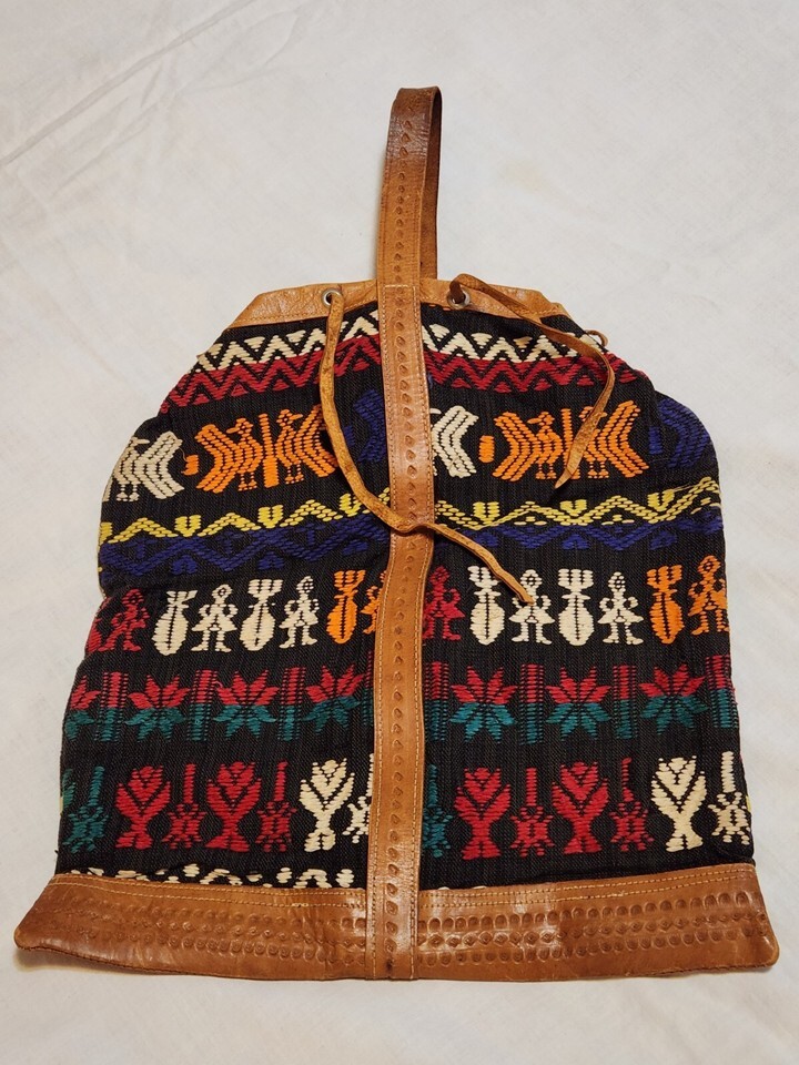 Handmade Rug Bag Boho Purse Leather Strap Woven Southwest w/ Matching Coin NEW