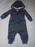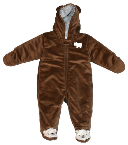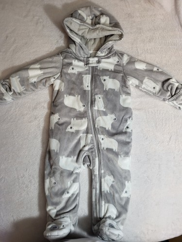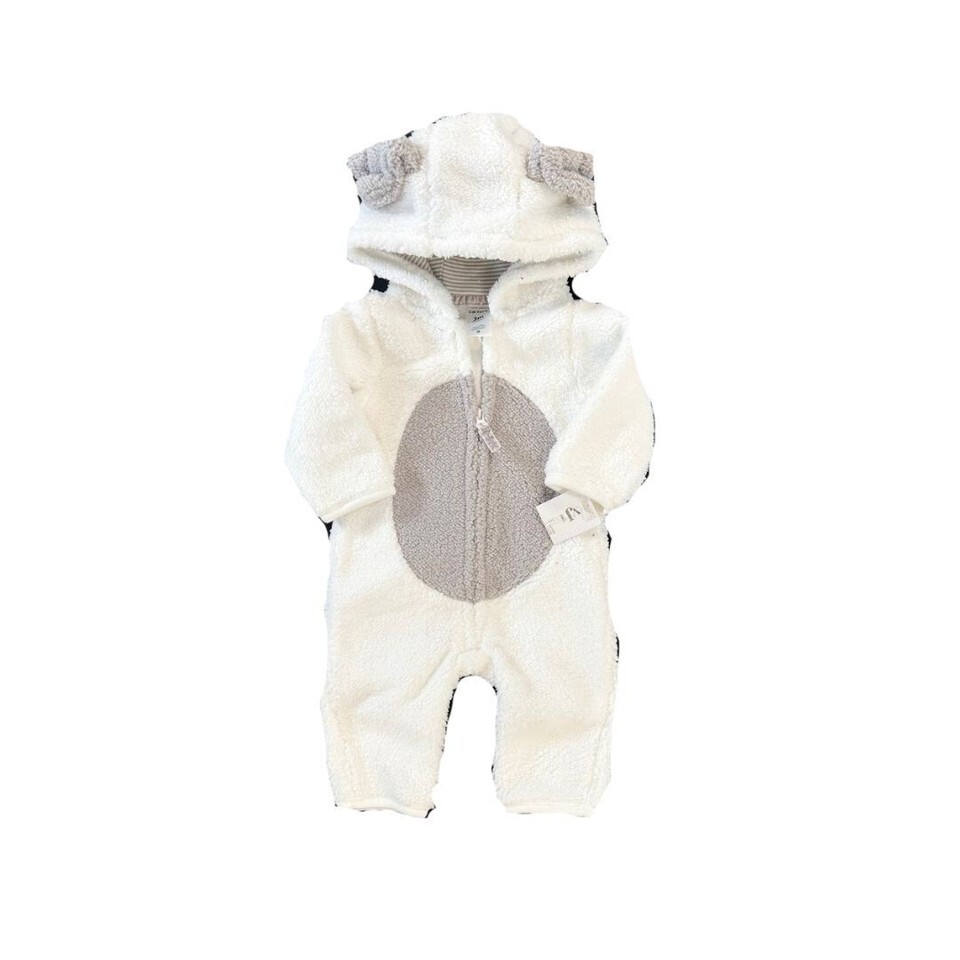 Adorable. Carters snuggly hooded jumpsuit is styled in fuzzy faux sherpa. Zip-front design Footless Hooded with 3D ear details; cuffed long sleeves and hem Shell: polyester; hood lining: cotton Machine washable Imported