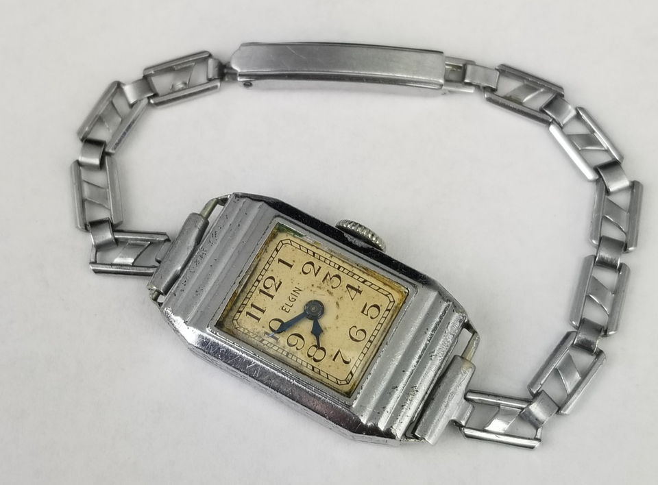 vintage womens watch Art Deco Elgin manual hand wind Nickel case