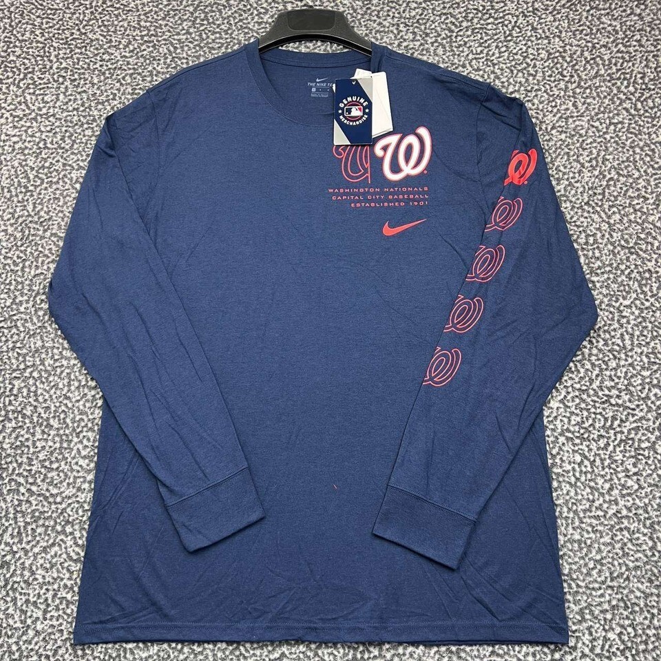 Nike Shirt Men Large Navy Washington Nationals Long Sleeve Crew Neck New L