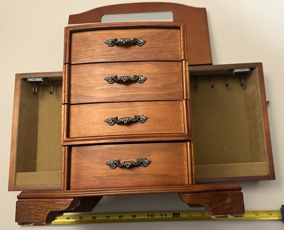 Large Wood Jewelry Box – Cherry Burl Finish (12”x 12" x 7") deep Brand New