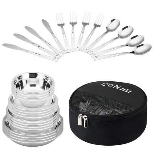 4-Piece Camping, Backpacking, Outdoor Kitchen Gear Mess Kit with Bowl, Plate ...
