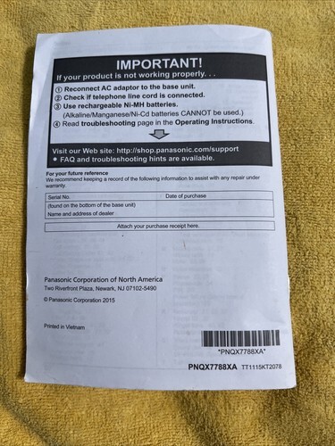 Manual User's Guide for Panasonic KX-TGE432 and similar items