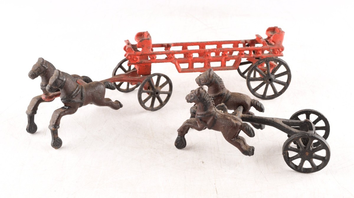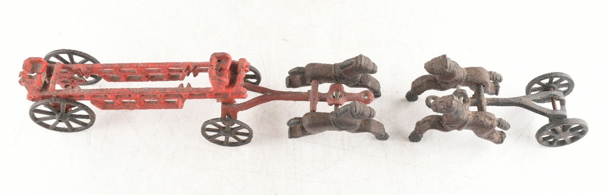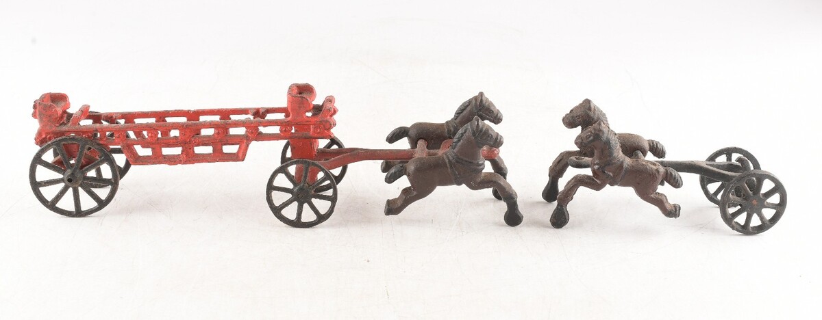 *Antique Vintage Cast Iron Horse Fire Wagon Toy Truck (2 Piece)