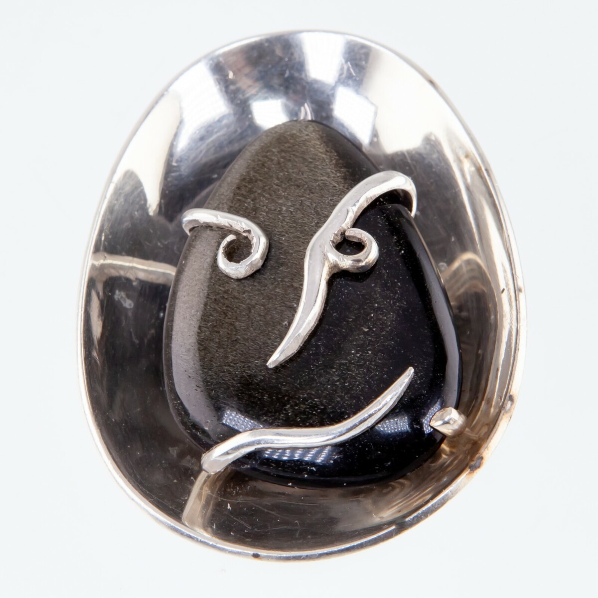 Wunderschones Anhanger- und Ohrringe-Set aus Sterlingsilber mit Obsidiansteinen von AE