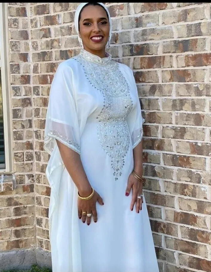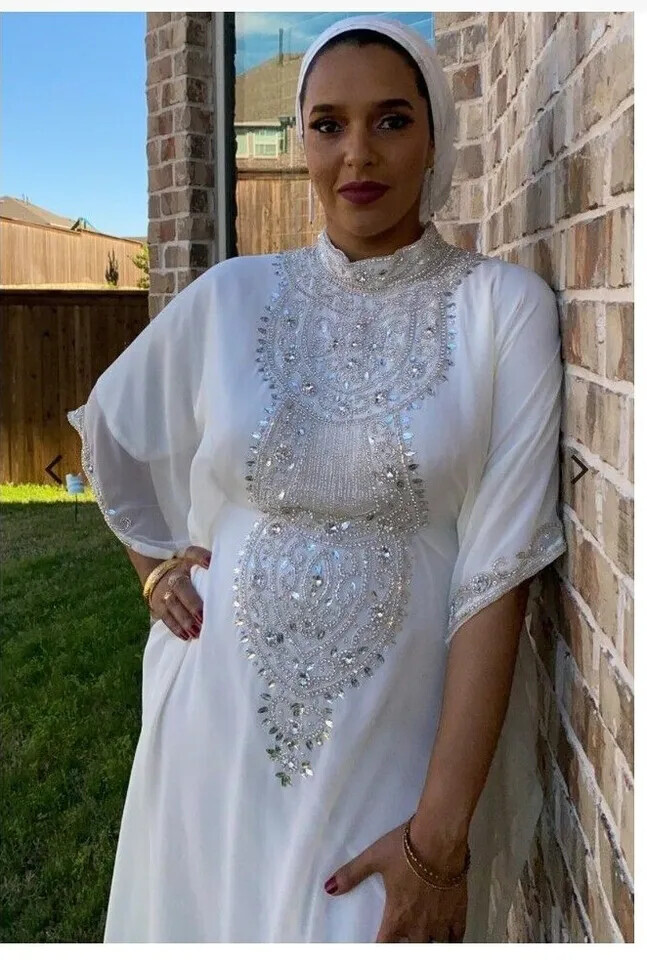 Wedding Ramzan Dress Farasha Abaya Dubai Kaftan White Fance Moroccan Georgette
