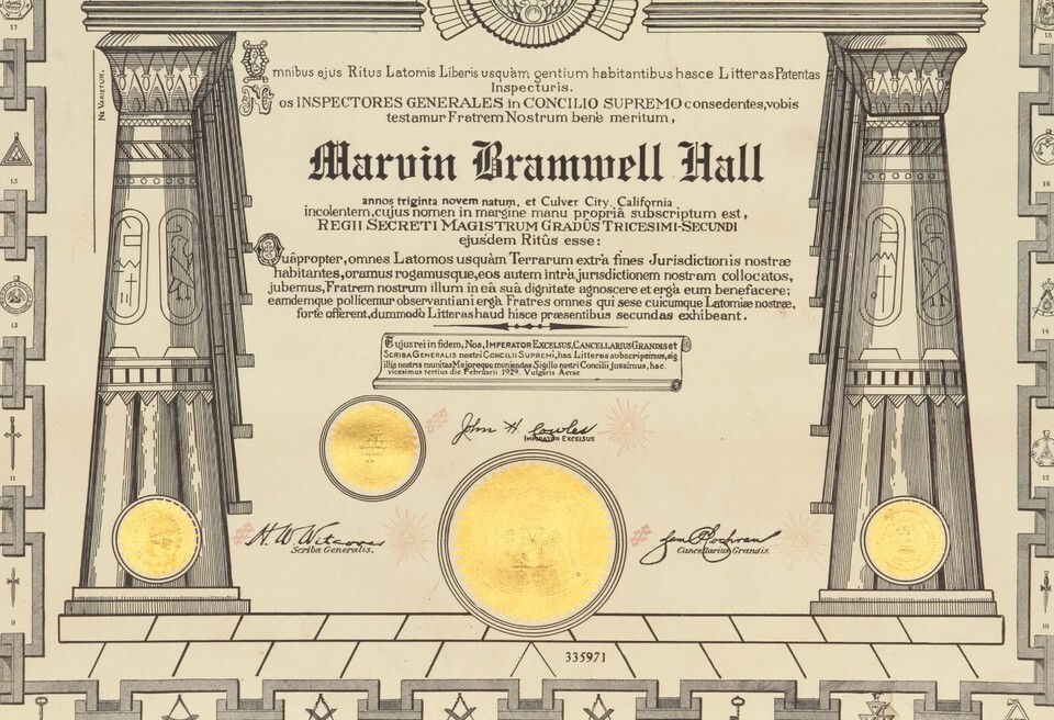 1929 Freemason Masonic Degree Certificate in and 50 similar items