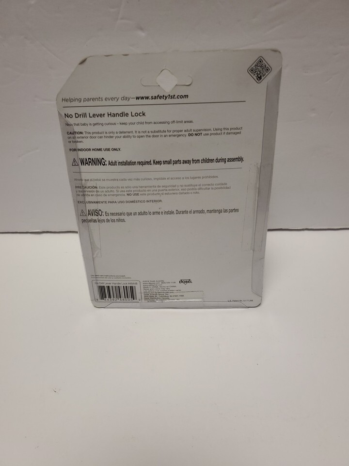 The Safety 1st No Drill Indoor Lever Handle Lock is designed to provide protection for babies and toddlers from potential hazards in the home. With the brand's reputation for quality and reliability, this model (48448) ensures that children are safe without the need for modification or customization. This product is an essential addition to any baby-proofing effort, offering peace of mind for parents and caregivers concerned about their child's safety.