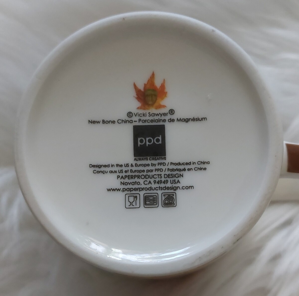 This is a beautiful bone china coffee mug from PPD with a Vicki Sawyer bird design. The mug is in mint condition as it was never used; just sat on my shelf looking pretty; smoke-free home.