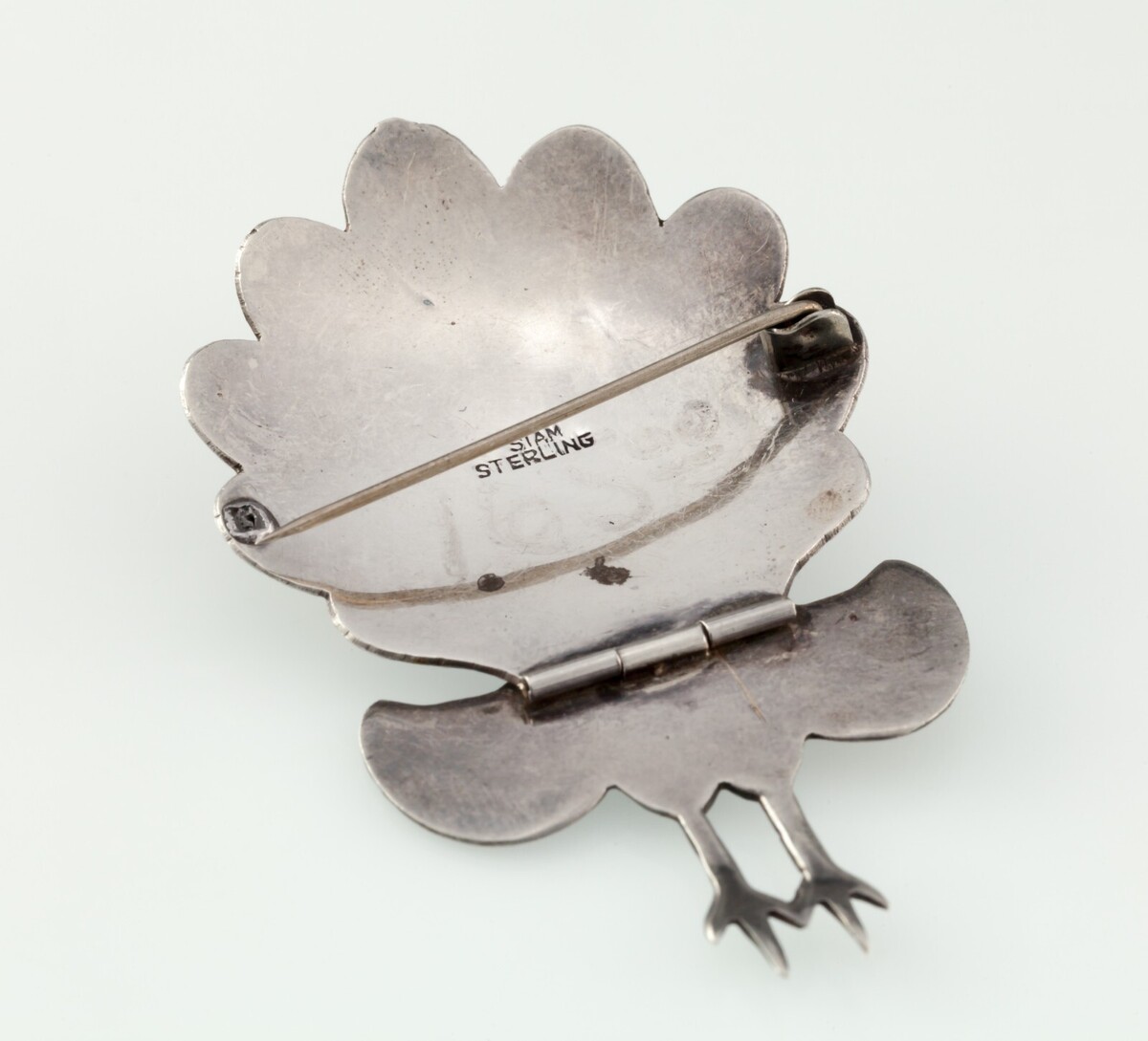 Wunderschone Emaille-Brosche aus siamesischem, farbenfrohem Pfau aus Sterlingsilber