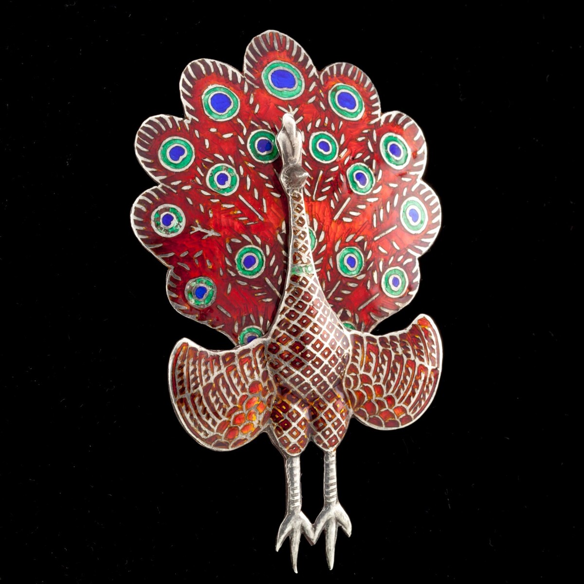 Schone Sterling Silber Siam Bunt Pfau Emaille Brosche