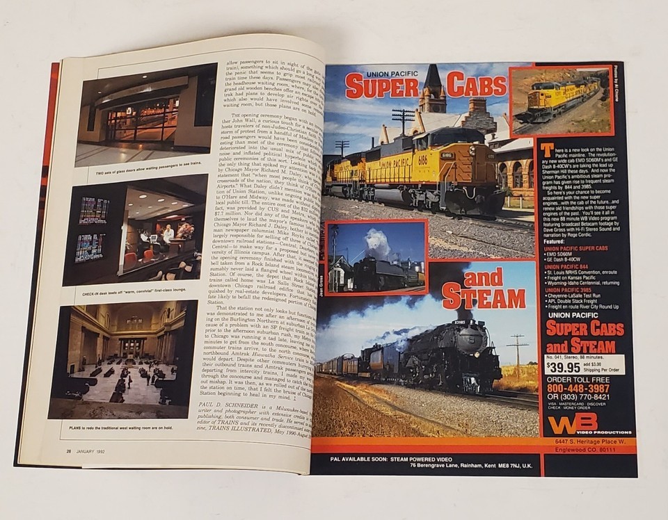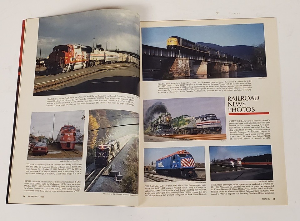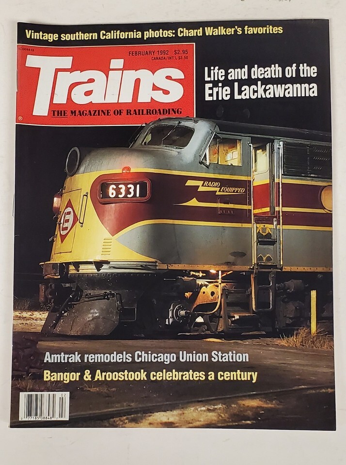 Trains Magazine, February 1992, Erie Lackawanna, EL 6331, F-unit, Night Photography, Amtrak Chicago Union Station, Bangor Aroostook, Chard Walker, Beaumont Hill, 1990s Railfan, Kalmbach Publishing, Vintage Railroad Magazine