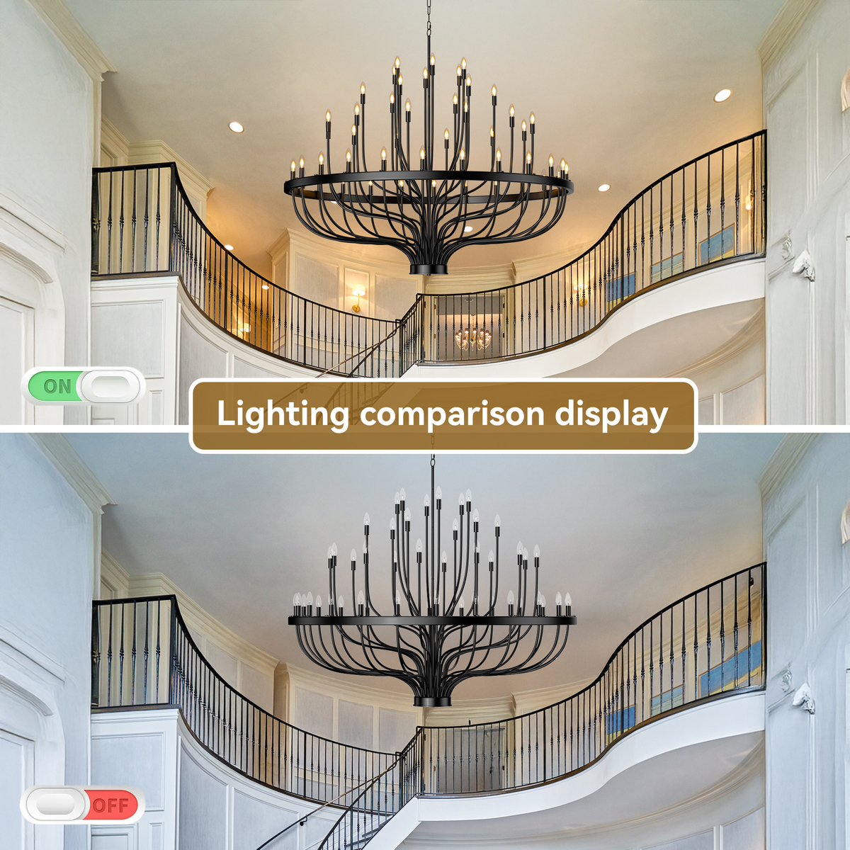 •[59-Inch Wide Lighting Diameter] The large light fixture, approximately 59 inches in diameter, provides wide light coverage, ideal for illuminating large dining tables, living rooms, or kitchen islands.