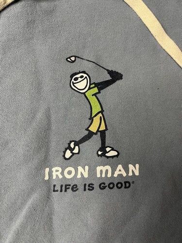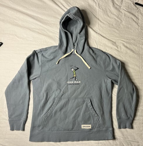 Life Is Good Hoodie Men’s Size Medium Blue Iron Man Golf Pullover Sweatshirt