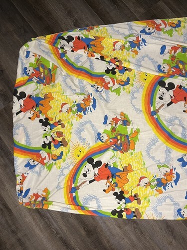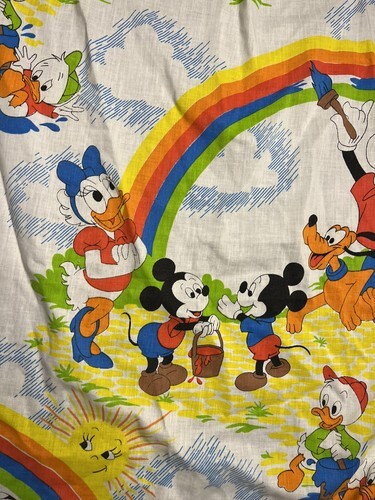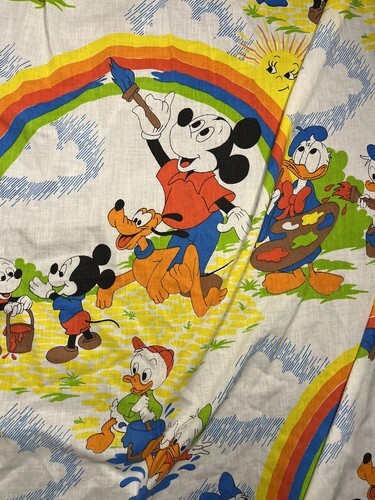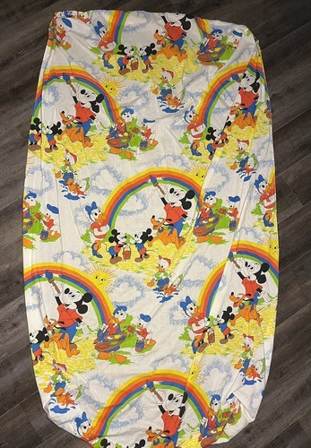 Vintage Disney Mickey Mouse & Friends Painting Rainbow Fitted Twin Sheet