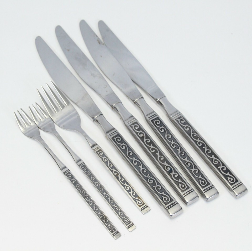 Oneida Spanish Court Dinner Knives Salad Fork Seafood Forks Stainless Lot of 7