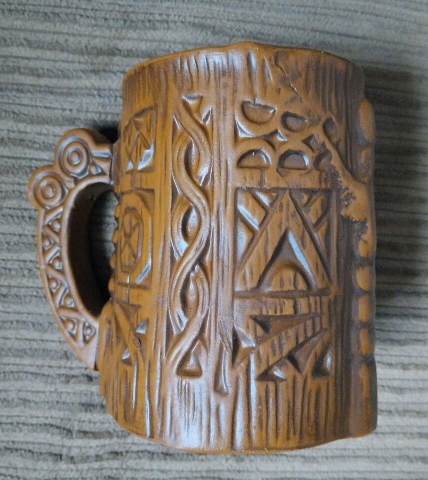 The Mark L Exclusive Tiki Mug with green jewel eyes is a vintage collectible from Japan, featuring a Hawaiian cultural design. This unique tiki mug adds a touch of tropical flair to any collection and is a must-have for fans of Hawaiian culture and vintage memorabilia. Made in Japan, this mug showcases intricate details and craftsmanship, making it a standout piece for collectors and enthusiasts alike.
