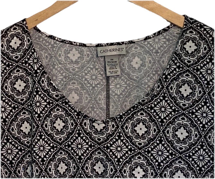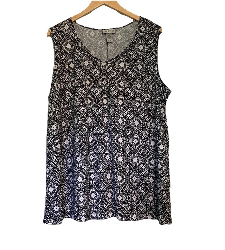 Catherines Sleeveless Tank Top Size 2X Black White Print Stretch Layering 22 24