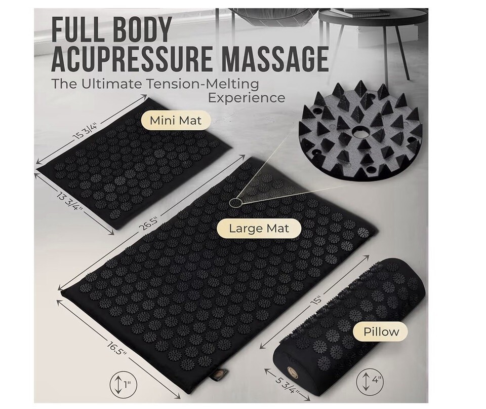 Complete Full-Body Pain Relief: Experience professional-level treatment at home with our unique three-piece system featuring 12,830 strategically placed spikes across a full-size mat, neck pillow, and mini pad. This comprehensive set targets every pressure point from head to toe, delivering the same therapeutic benefits as expensive acupressure therapy sessions but in the comfort of your own space for lasting tension relief.