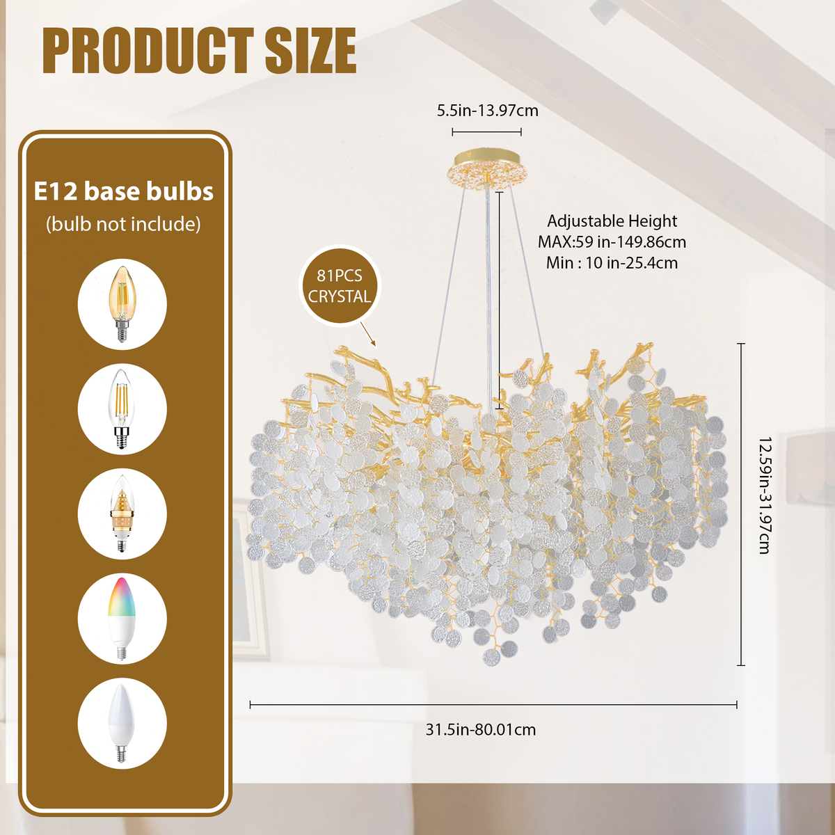 8-Light Modern Gold Tree Branch Chandelier,32" Living Room Crystal Pendant Light