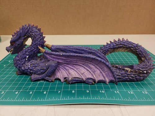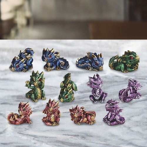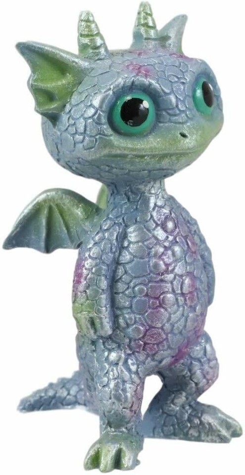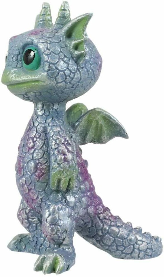 ? This Whimsical Purple Baby Dragon Statue is made of designer composite resin, hand painted and polished individually. Color Tone may vary.