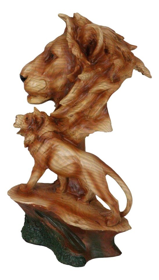 ? This Wildlife Scenic Lion Bust Sculpture is made of designer composite resin, hand painted and polished in faux wood finish. The faux wood finish adds a special touch of nature to the sculpture. Color Tone may vary.