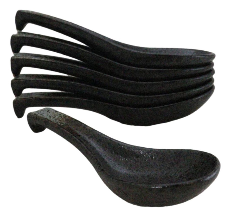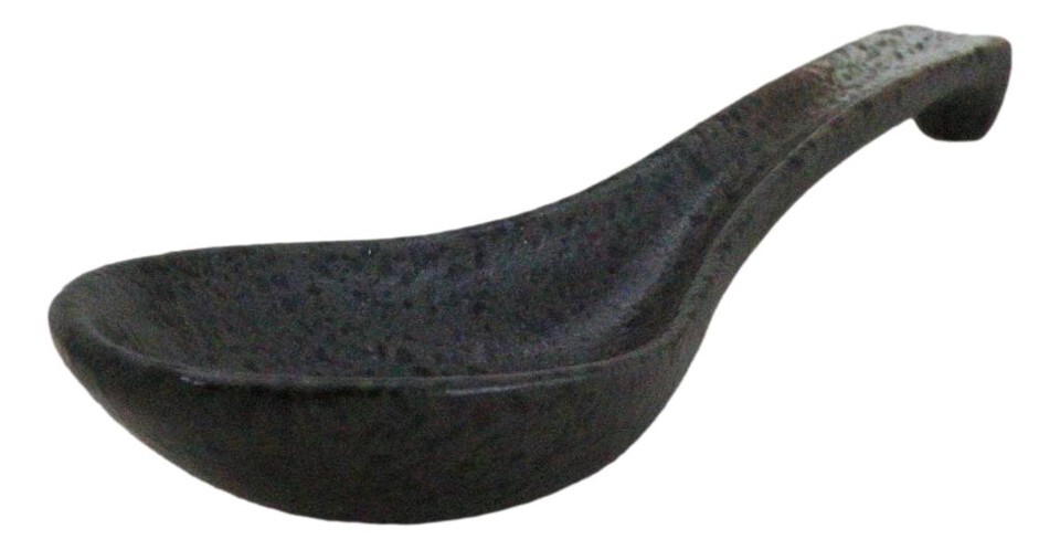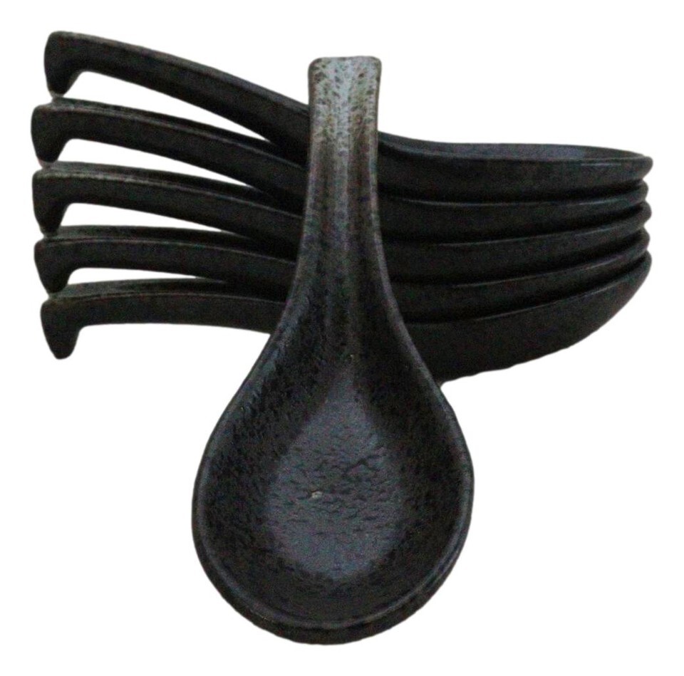 Pack of 6 Charcoal Grey Tone Hakumu Ceramic Asian Soup Spoons With Hook 5.75"L