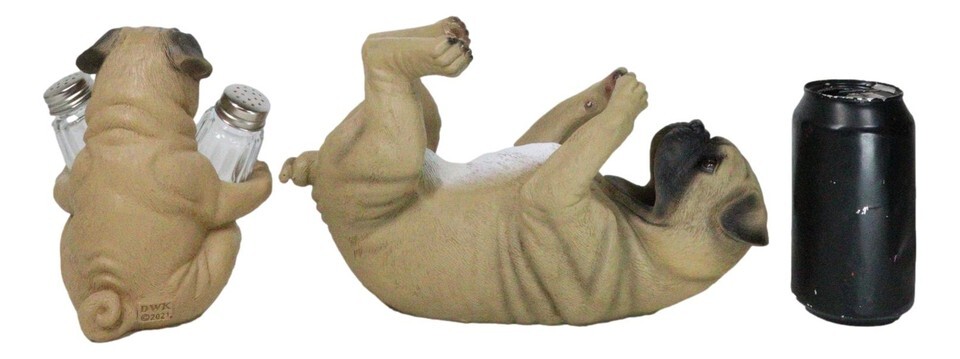 ? The pug salt pepper shakers holder measures approximately 6.25" tall, 5" wide and 4.5" deep each.