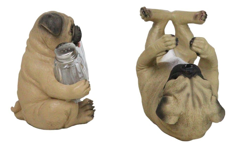 ? These cute pug dog figurine set resembles our very own pet! They have wrinkly faces, curled tails and extra flesh in the right places, making them such lovely dogs! These pug friends will aid you in your kitchen organization!