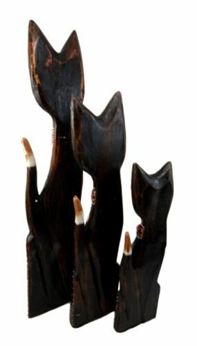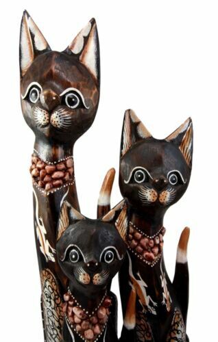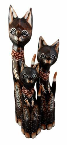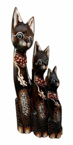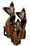 Balinese Wood Handicraft Gecko Tattoo Feline Cat Family Set of 3 Figurines 20"H