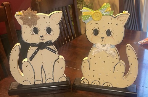 These cats are made of Albesia wood, hand painted and polished individually. Because each figurine is hand carved (handicraft) and crafted out of natural wood, some variations in design and finish are a norm.