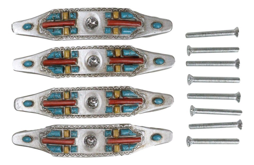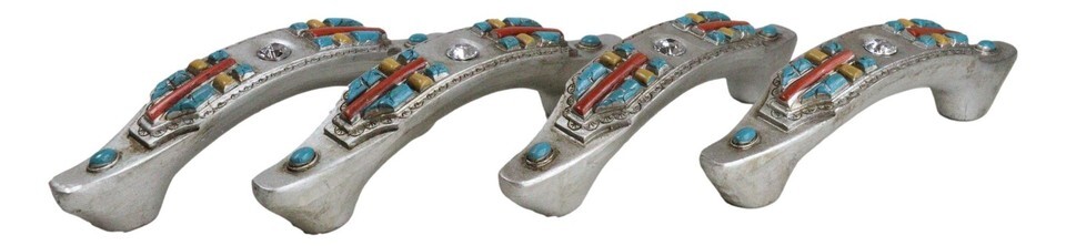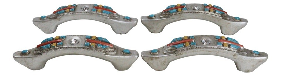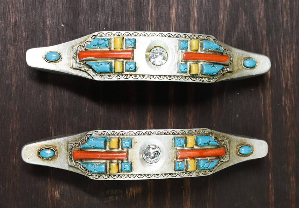 ? These Southwestern Turquoise Cross drawer pulls is made of designer composite resin, hand painted and polished individually. Each bar pull is adorned with a beautiful rhinestone and colorful gemstones.