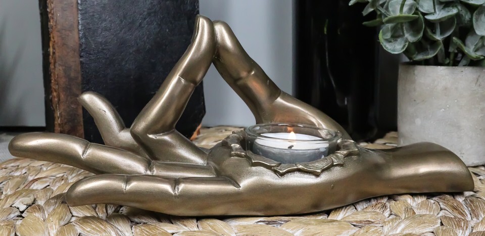 Ebros Shunya Mudra Buddha Palm Votive Candle Holder Figurine 9.25"L Yoga Meditation