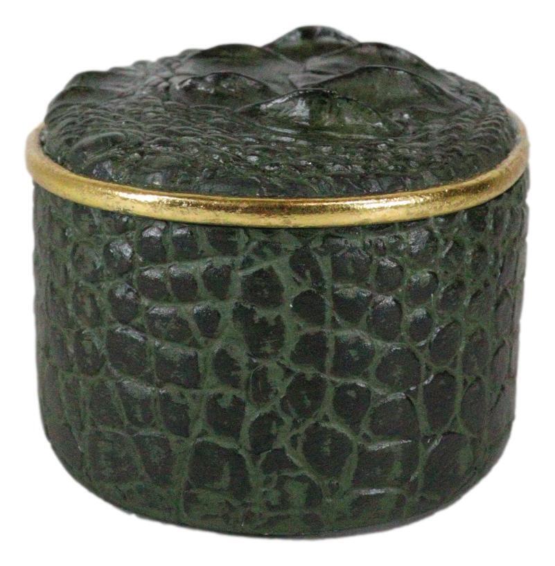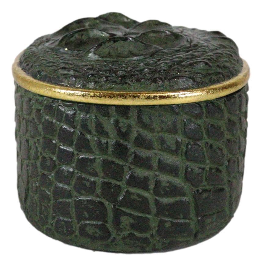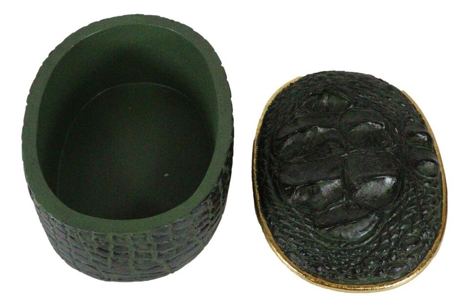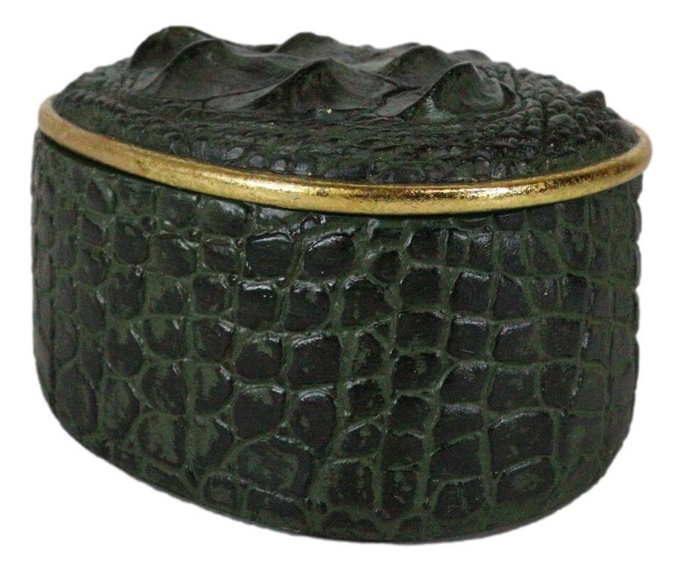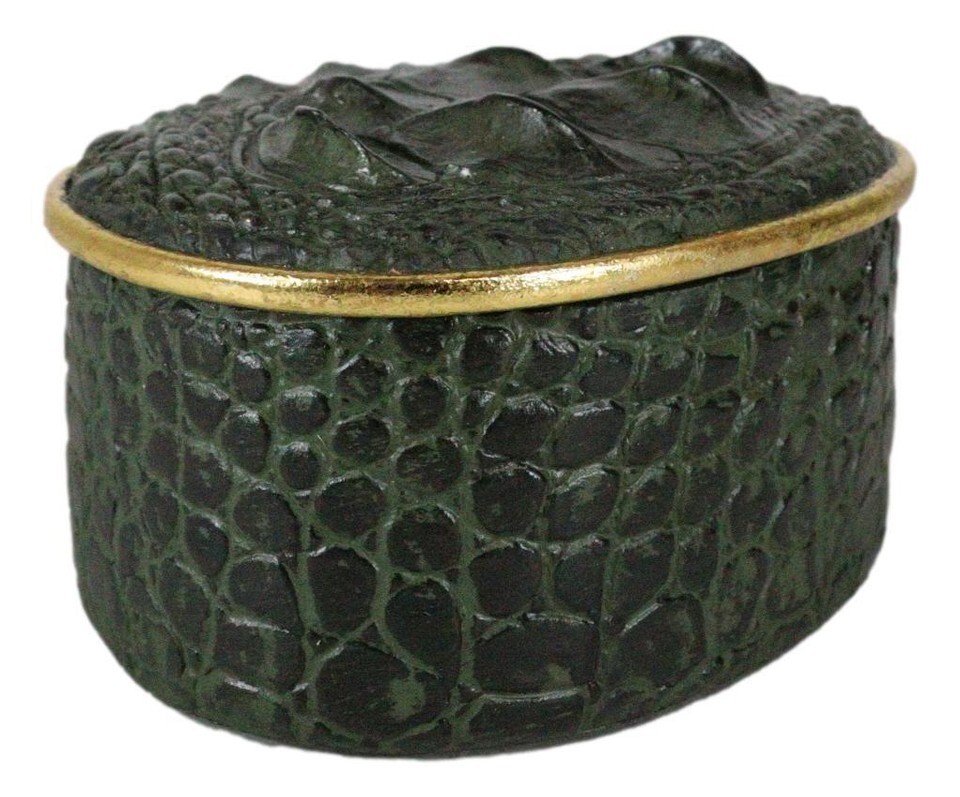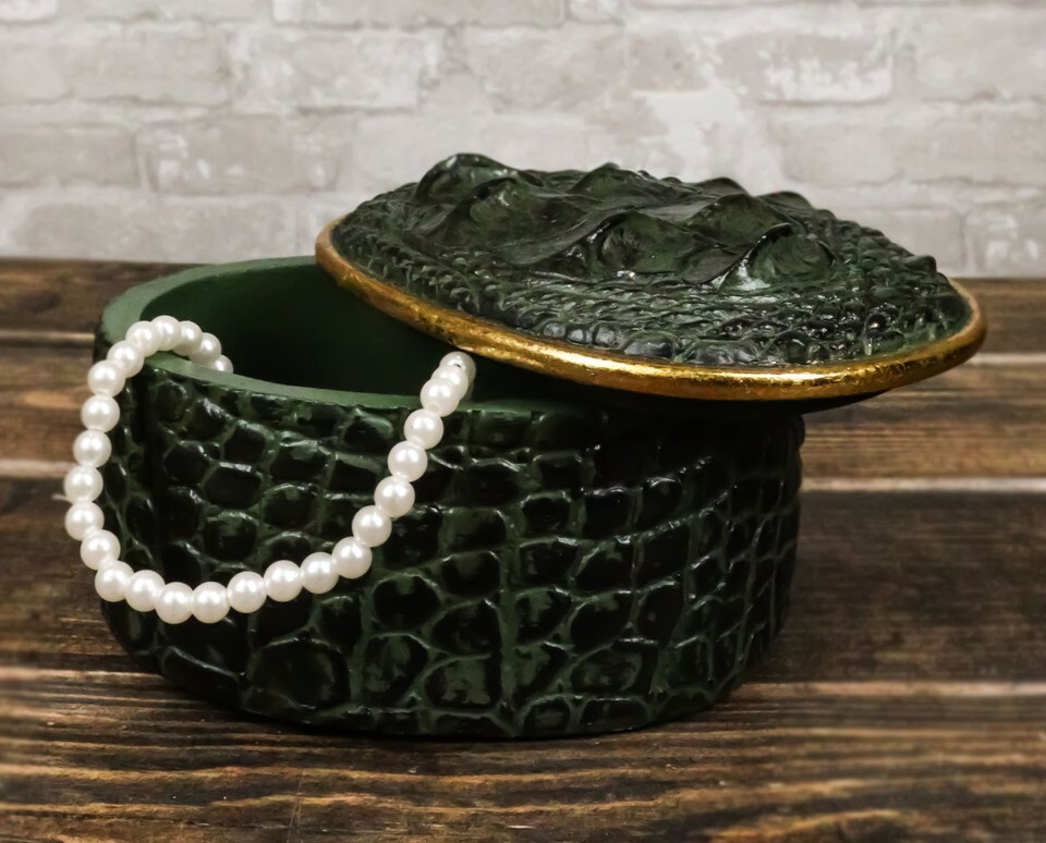 Ebros Faux Crocodile Pattern Textured Green Print Gold Oval Decorative Jewelry Box
