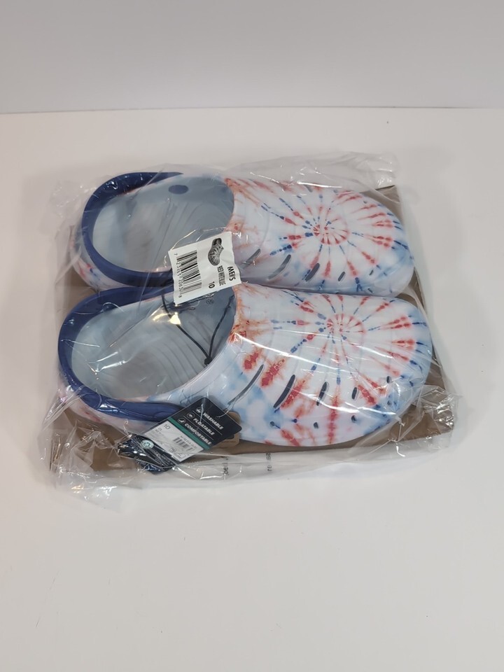 NWT Rugged Shark M RS EVA Comfort Clogs Sandals Mens 10 Red White Blue Starburst
