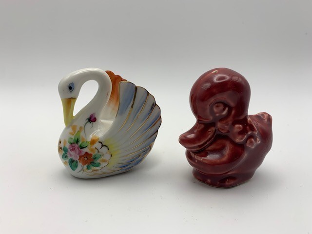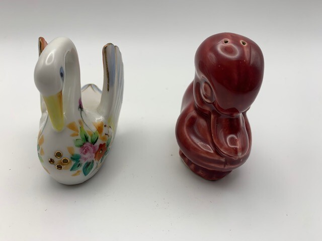 Pair vintage mismatched salt and pepper shakers Duck and Swan Very good. Please refer to images.