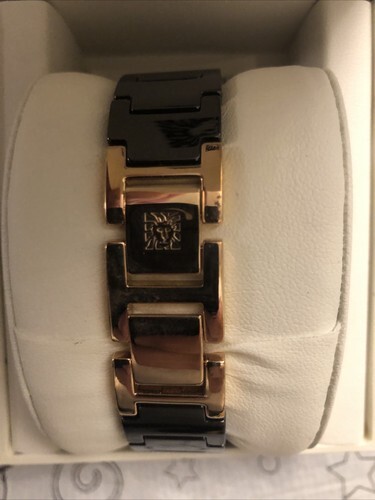 The ANNE KLEIN AK/1018RGBK Quartz Analog Black Rose Gold/Black wristwatch is a stylish and elegant timepiece designed for women. Featuring a pink bezel and Roman numerals on a black dial, this watch exudes a dressy/formal style. With a water resistance of 30m and a solid caseback, it combines both functionality and durability. The stainless steel/ceramic band in rose gold and black adds a touch of luxury, while the 32.9mm case size ensures a comfortable fit on the wrist. The watch comes with its original box and packaging, making it a perfect gift for any occasion.